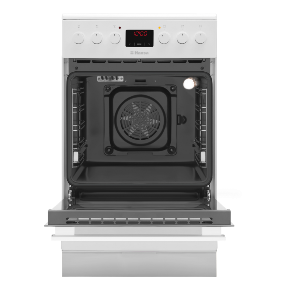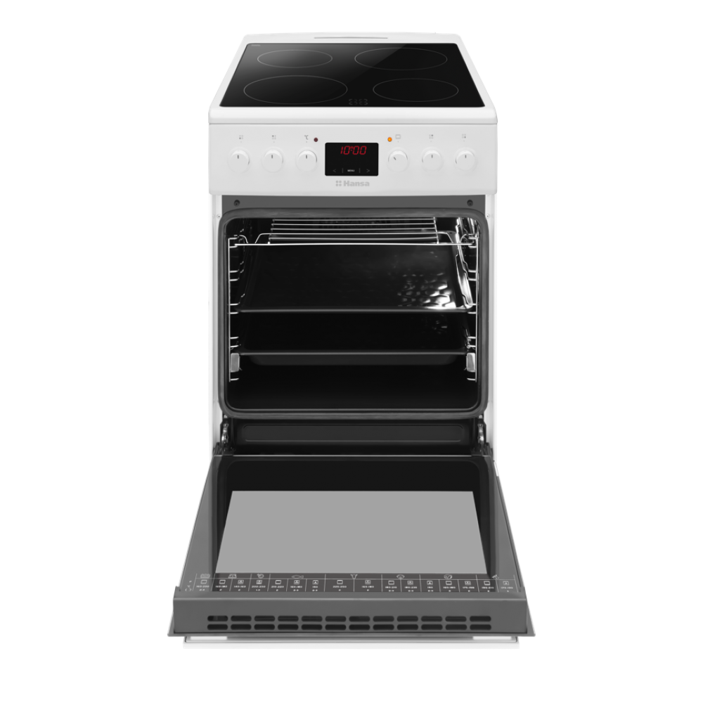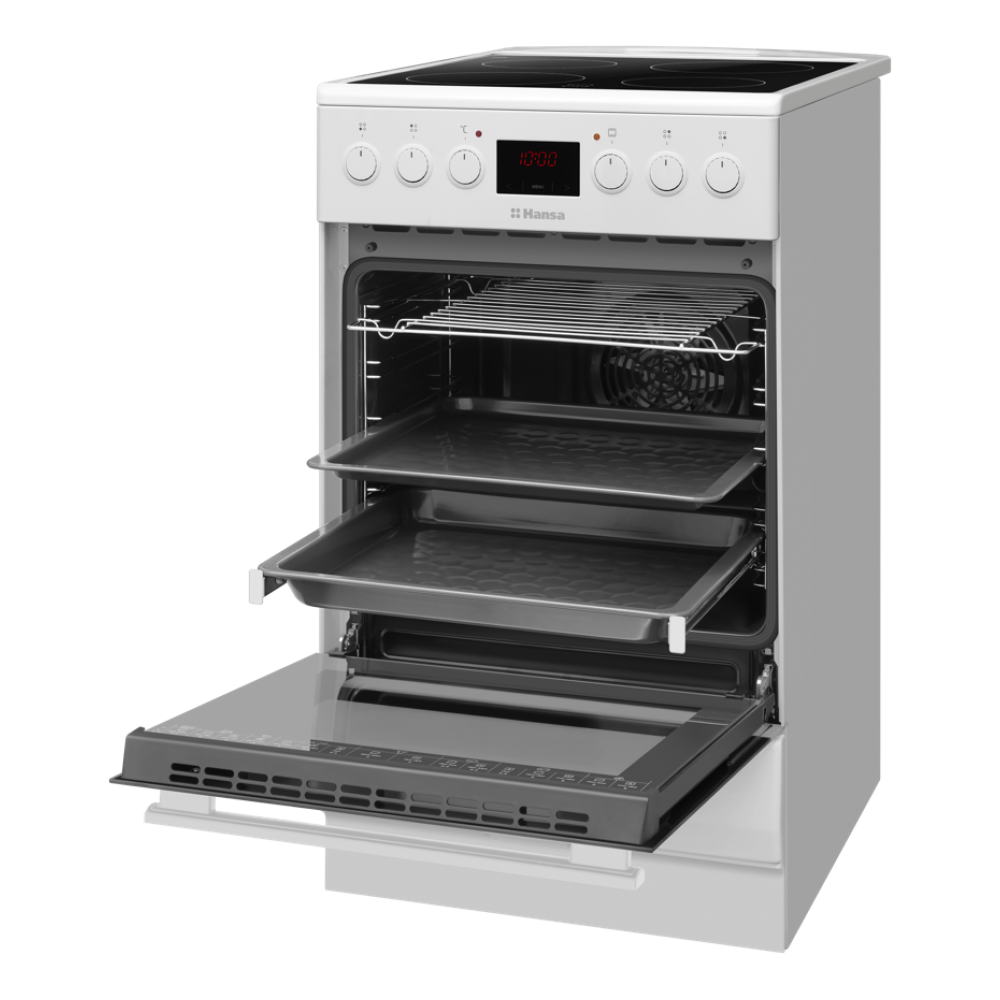 Цифровой таймер электрической плиты Hansa FCCW58303 позволит выбрать идеальное время приготовления любимых блюд. Стеклокерамическая варочная панель имеет 4 конфорки HiLight. Духовка c 8-ю программами нагрева и грилем подойдет для приготовления любых блюд – от сочного мяса до ароматной выпечки. Тройное остекление дверцы позволяет ей не нагреваться во время работы, а выдвижные телескопические направляющие и противни ProCook сделают готовку еще комфортнее.