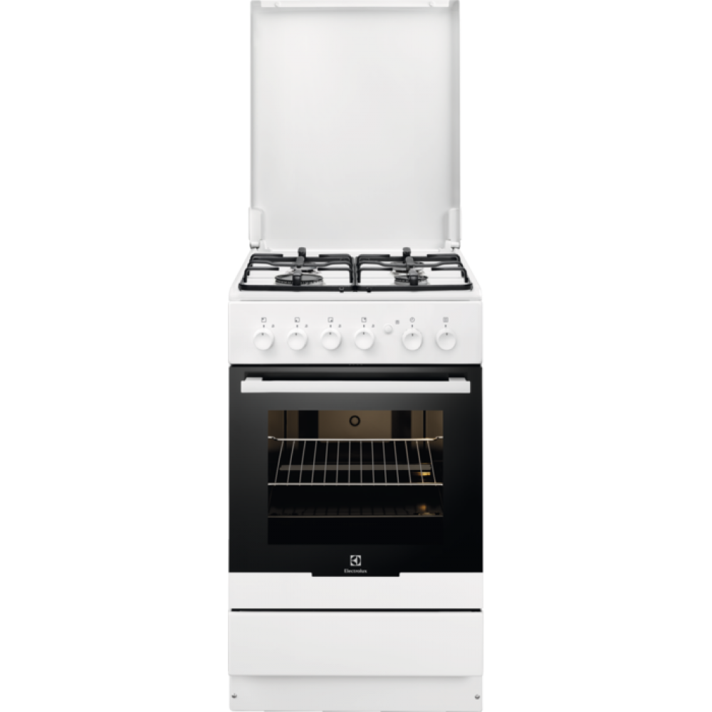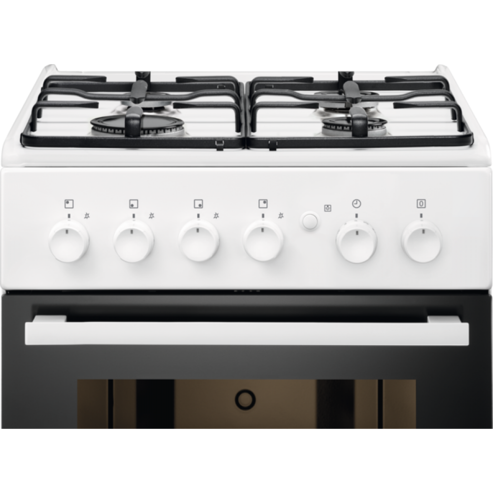 Модель Electrolux EKG 951106 W классического белого цвета оснащена газовыми варочной панелью и духовым шкафом, которые при помощи автоматического электроподжига. Кроме того, в обоих случаях предусмотрен газ-контроль — система защиты, которые перекрывает подачу, предотвращая утечку в момент затухания пламени. На эмалированной поверхности расположено 4 газовых конфорки, одна из которых повышенной мощности в 3 кВт.