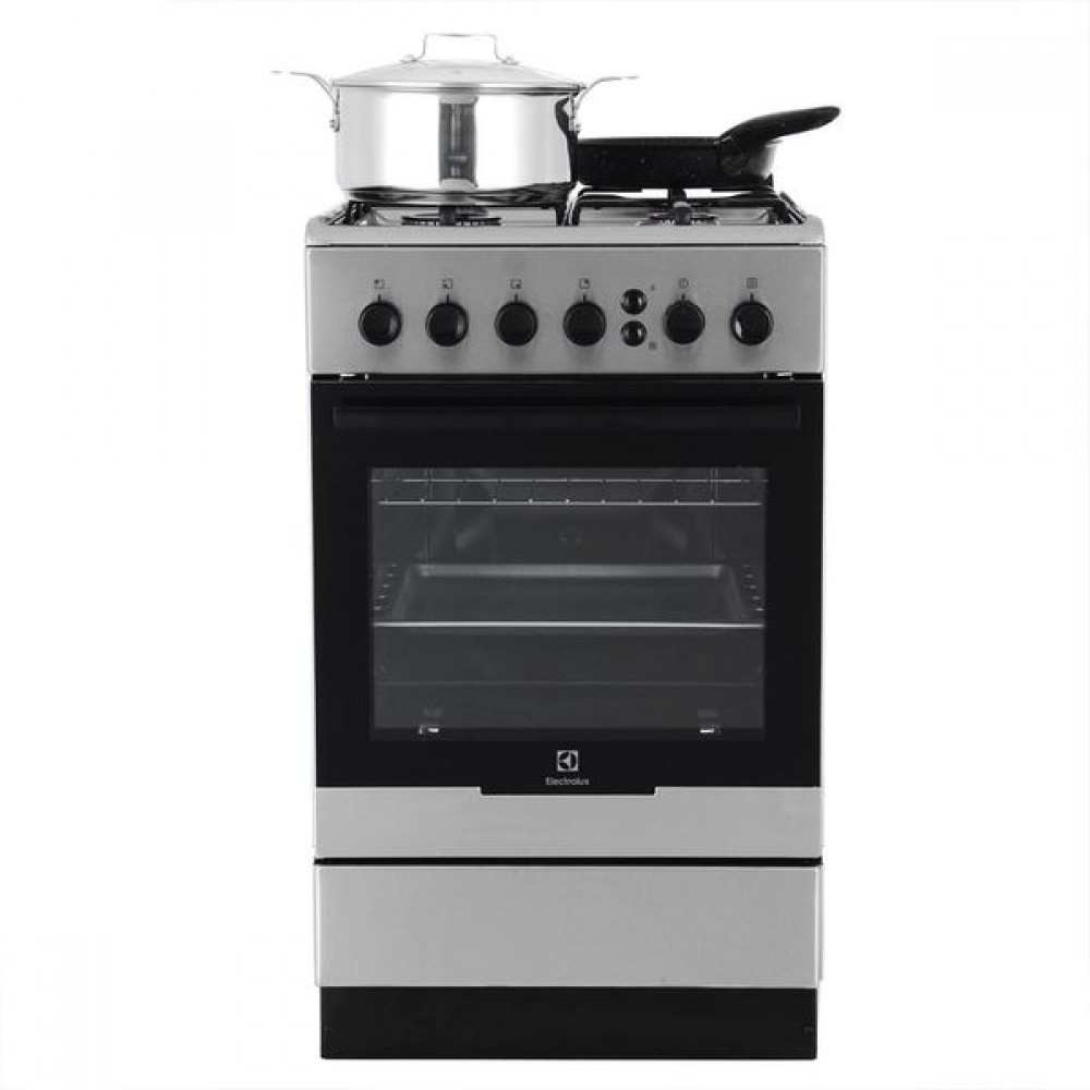 Модель Electrolux EKG 951108 X в цвете «нержавеющая сталь» оборудован эмалированной варочной поверхность с 4 конфорками, а также духовым шкафом объемом в 62 литра. Гриль обеспечивает равномерную прожарку больших кусков мяса. Автоматический электроподжиг разжигает пламя в одно касания, исключая надобность использования вспомогательных элементов. Система газ-контроль перекрывает подачу в момент затухания огня.