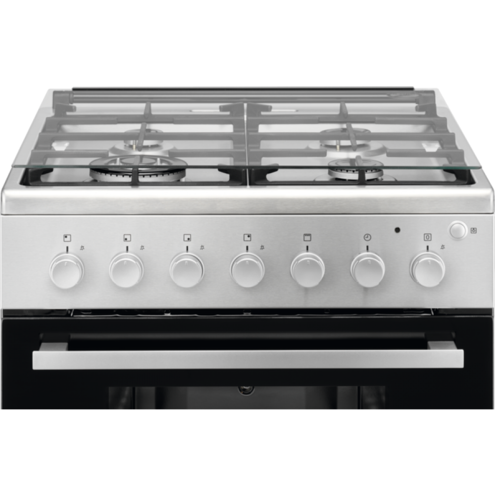 Газовая плита Electrolux EKG96118CX оснащена конфоркой «Тройная корона», которая быстро нагревает сковороды с толстым дном и крупногабаритные кастрюли, что экономит время. Конструкция прибора предусматривает электрический гриль, который обеспечивает равномерную обжарку мяса и птицы. Газ-контроль перекрывает подачу газа, если пламя случайно гаснет, что гарантирует безопасность эксплуатации.