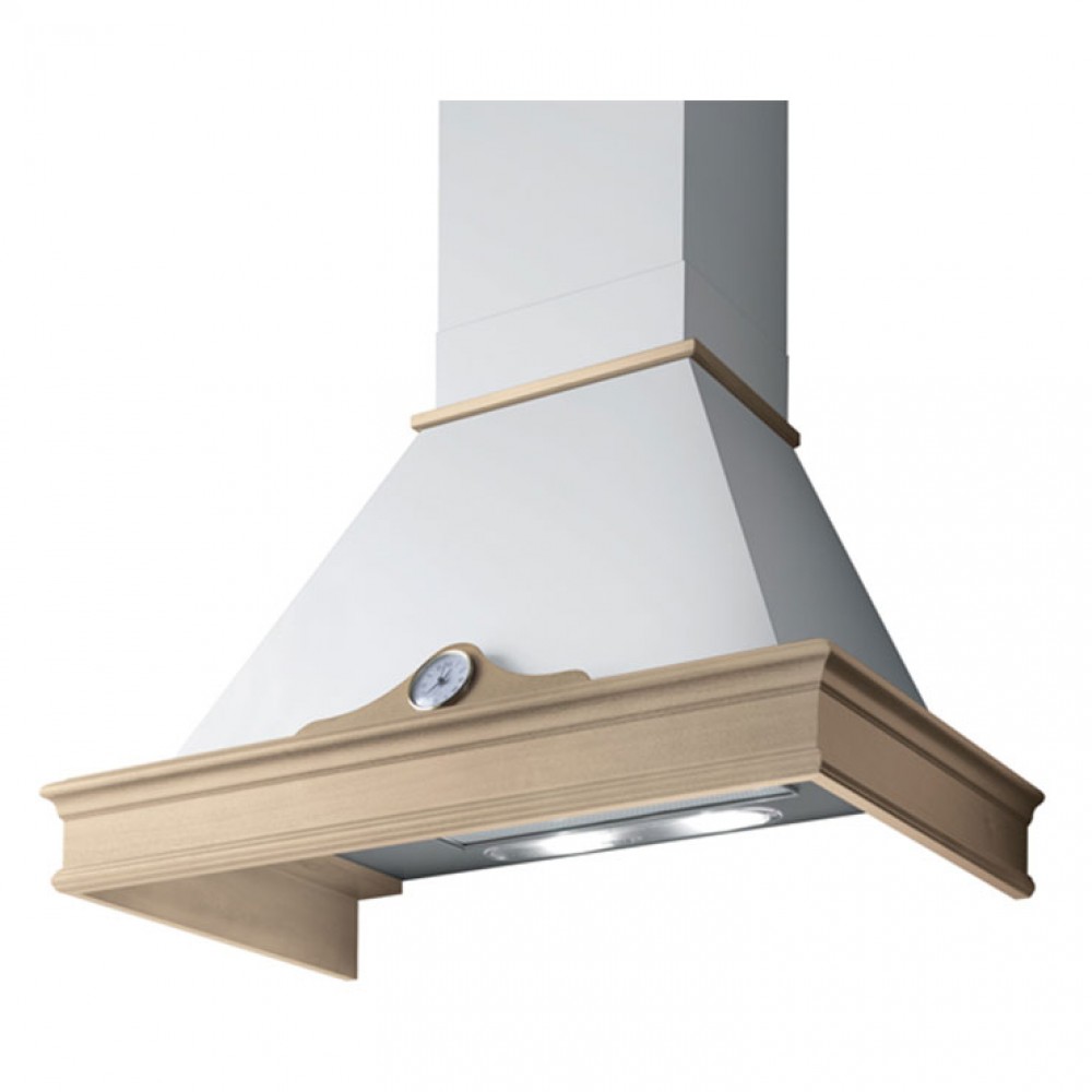 Дизайн. Классическая купольная вытяжка ELICA ORETTA WH/A/60 T.GREZZO шириной 60 см выполнена в стиле кантри. Модель белого цвета дополнена рамкой из натурального дерева со стилизованными часами. Своеобразный дизайн позволяет интегрировать вытяжку в классический интерьер или на кухню в стиле «прованс».