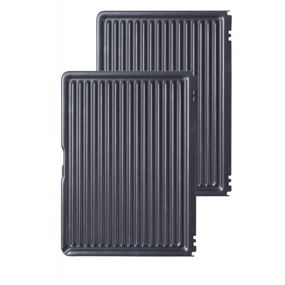 Съемные алюминевые пластины для гриля с антипригарным покрытием. Пластины предусмотрены для мытья в посудомоечной машине.