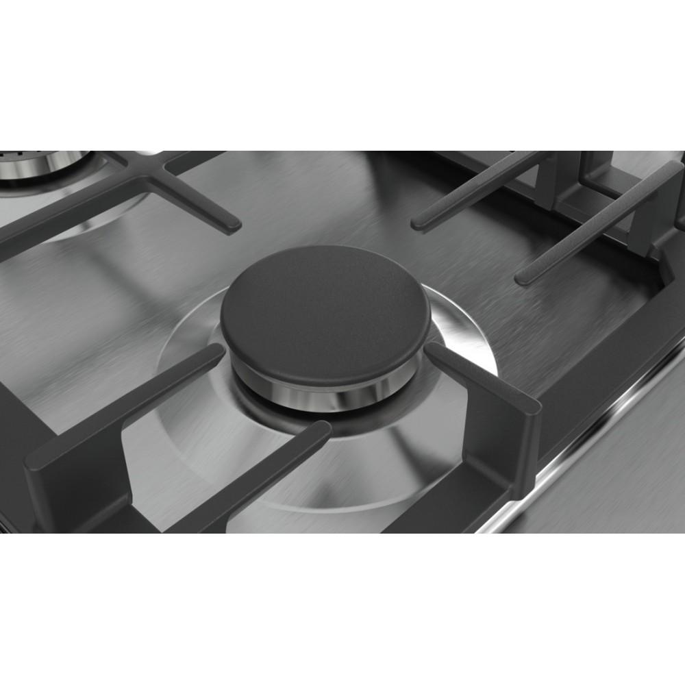 Для эргономичного контроля нагрева модель оборудована поворотными переключателями. Автоматический электроподжиг упрощает пользование прибором. Термоэлектрическая защита исключает утечки газа.