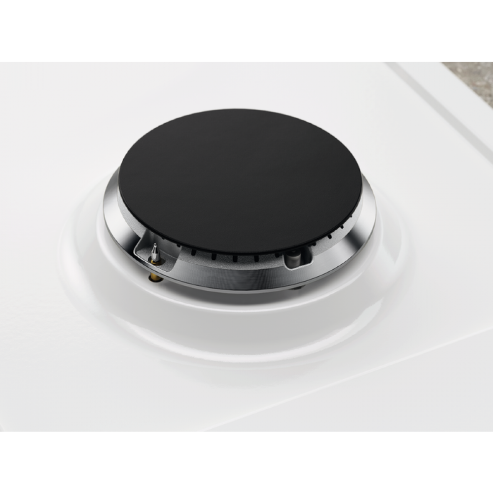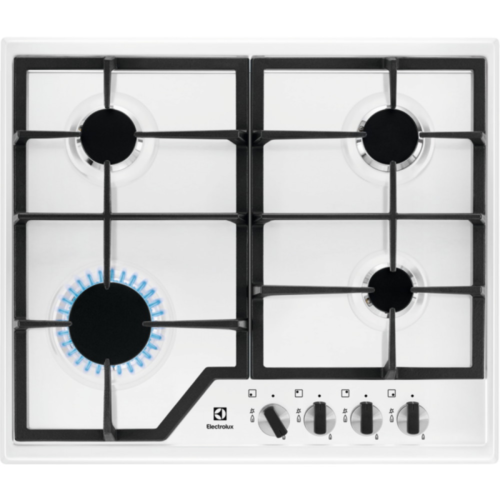 Варочная панель Electrolux GPE263MW белого цвета оборудована мощной горелкой Speed Burner, которая позволяет экономить до 20% энергии за свет быстроты нагрева. Включение производится поворотом ручек. Чугунные подставки надежно удерживают посуду. Газ-контроль обеспечивает безопасность от утечки.