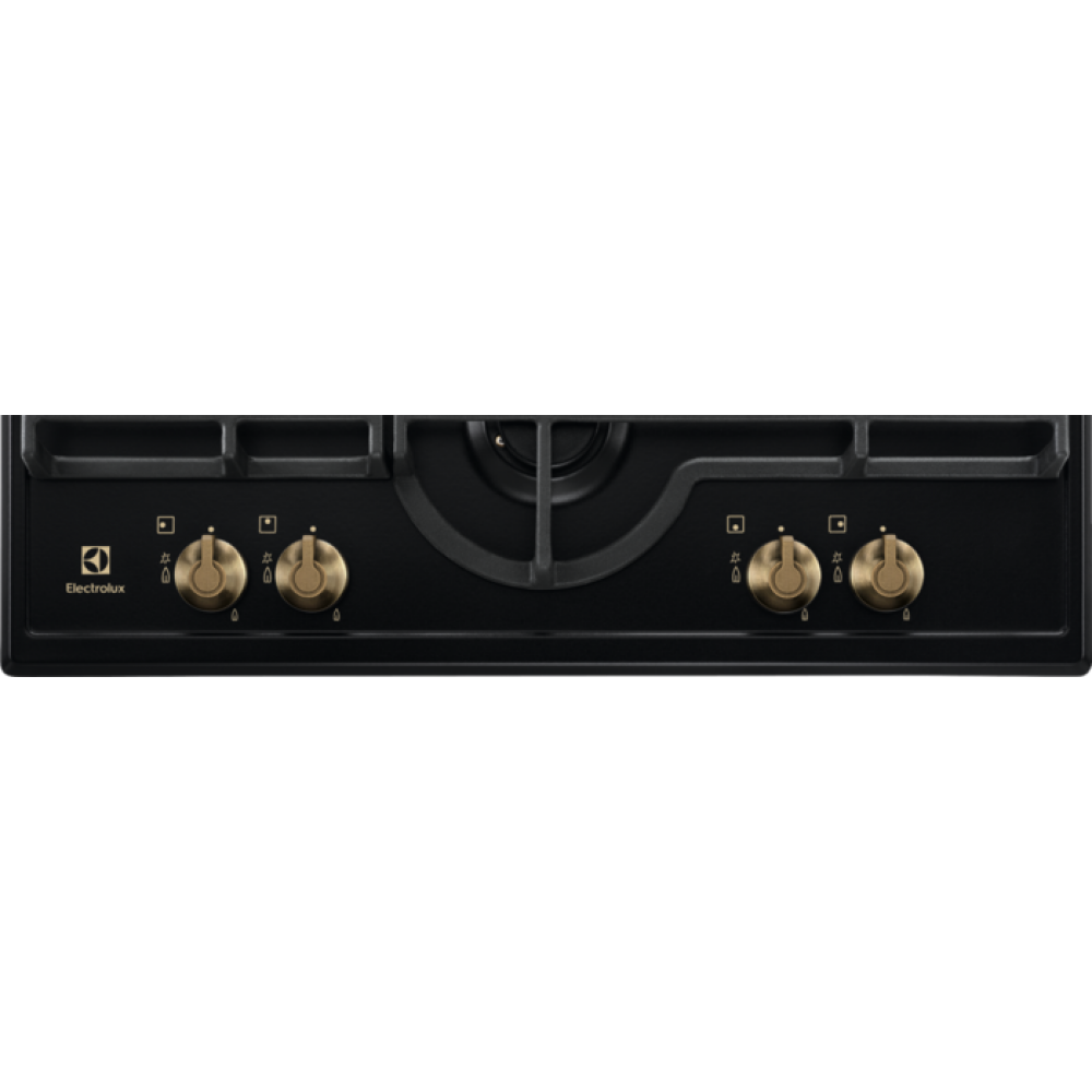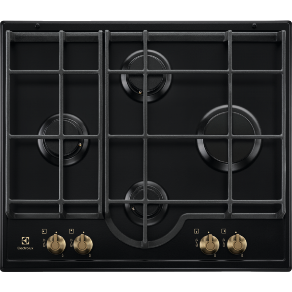 Варочная панель Electrolux GPE 362 RBB представлена в цвете «матовый черный». Поворотные переключатели оттенка «латунь» быстро и плавно регулируют мощность пламени. Эмалированный металл поверхности устойчив к механическим повреждениям и перепадам температур. Чугунные решетки надежно удерживают посуду различного диаметра.