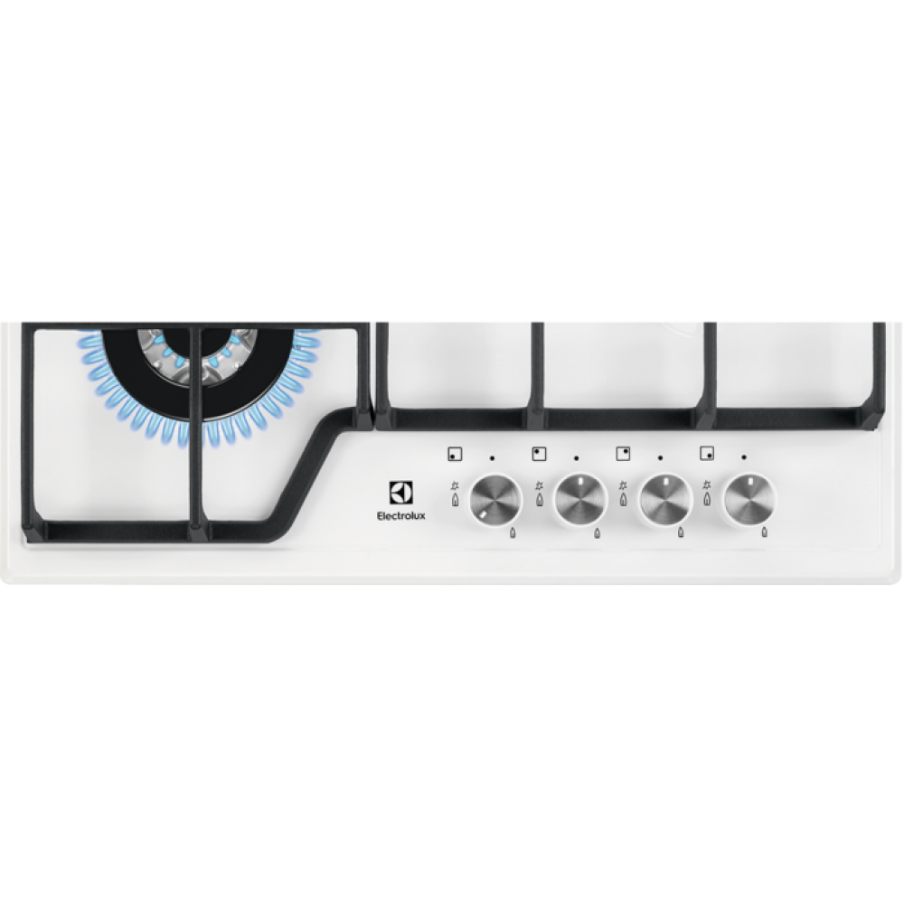Electrolux GRE363MW — варочная панель с поверхностью из эмалированной стали белого цвета. Панель управления сдвинута вправо, чугунные решетки разного размера и конфигурации позволяют удобно разместить посуду. Газ-контроль обеспечивает безопасность использования. Мощная горелка WOK позволяет быстро разогревать кастрюли и сковороды, кипятить воду и экономить до 20% энергии.