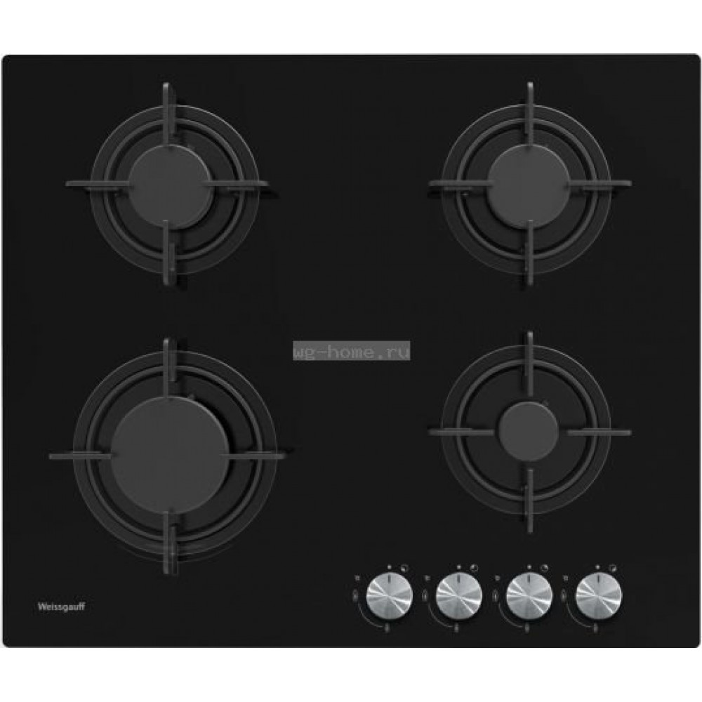 Газовая варочная панель Weissgauff HG604BG. Weissgauff HG 604 BG — газовая варочная поверхность в стильном черном цвете украсит любой интерьер кухни.Автоматический электроподжиг позволяет отказаться от использования спичек и зажить горелку одним движением. Индивидуальные решетки для каждой конфорки выполнены из легкого чугуна. Это упрощает уход за прибором.