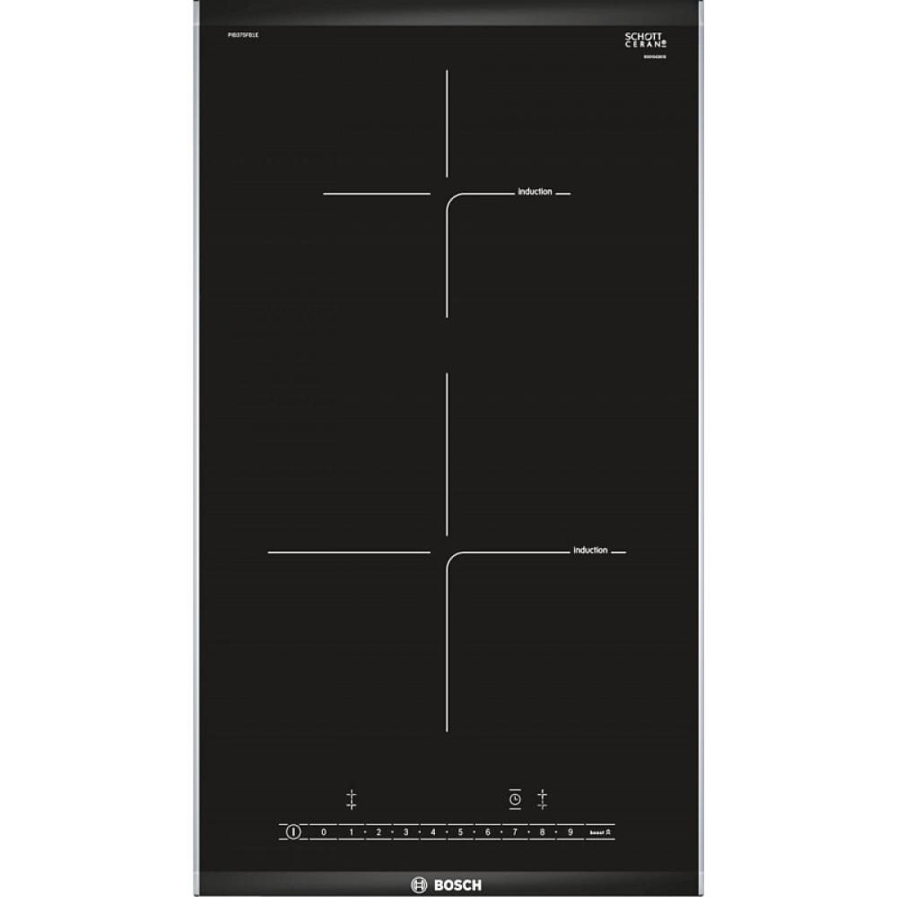 Диаметр конфорки А — 14,5 см, конфорки B — 21 см. Диаметр дна посуды должен примерно соответствовать этим цифрам, чтобы плита хорошо распознавала и нагревала кастрюли или сковородки. Мощность нагрева в Бош PIB375FB1E имеет девять ступеней регулировки. Примечательно, что специальная опция PowerBoost обещает более быстрый нагрев и закипание, чем даже последняя ступень мощности.