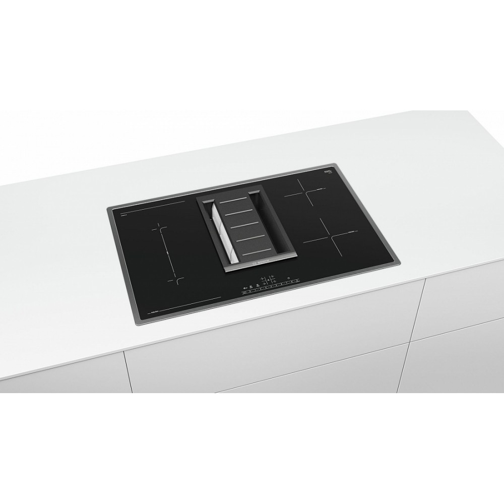 Система вентиляции запускается автоматически при любом использовании панели. При необходимости его можно отключить. Если во время приготовления возник особенно сильный запах или чад, к вашим услугам интенсивный режим — вентилятор будет работать некоторое время на максимальной мощности, а затем вернётся к стандартному режиму. После выключения прибора система вентиляции остаётся активной ещё несколько минут за счёт функции остаточного хода. Это позволит окончательно очистить воздух.