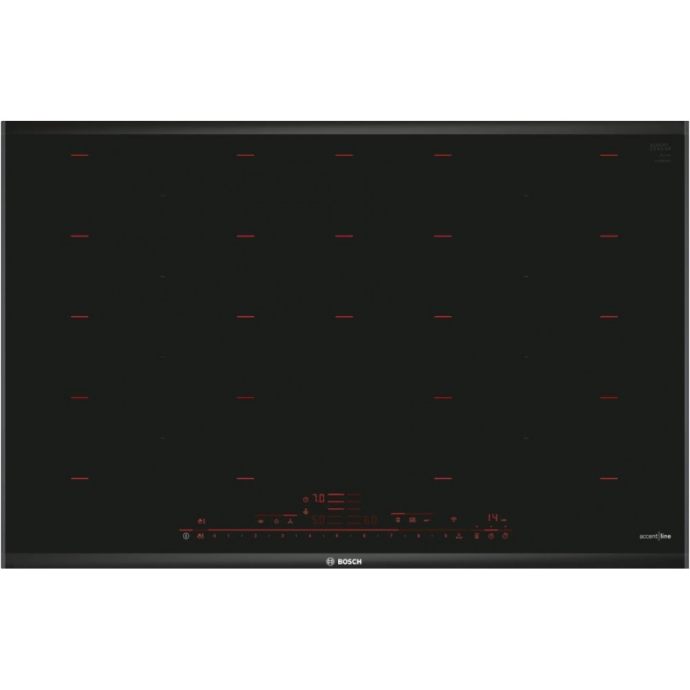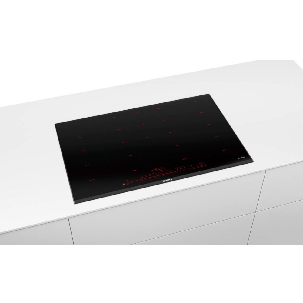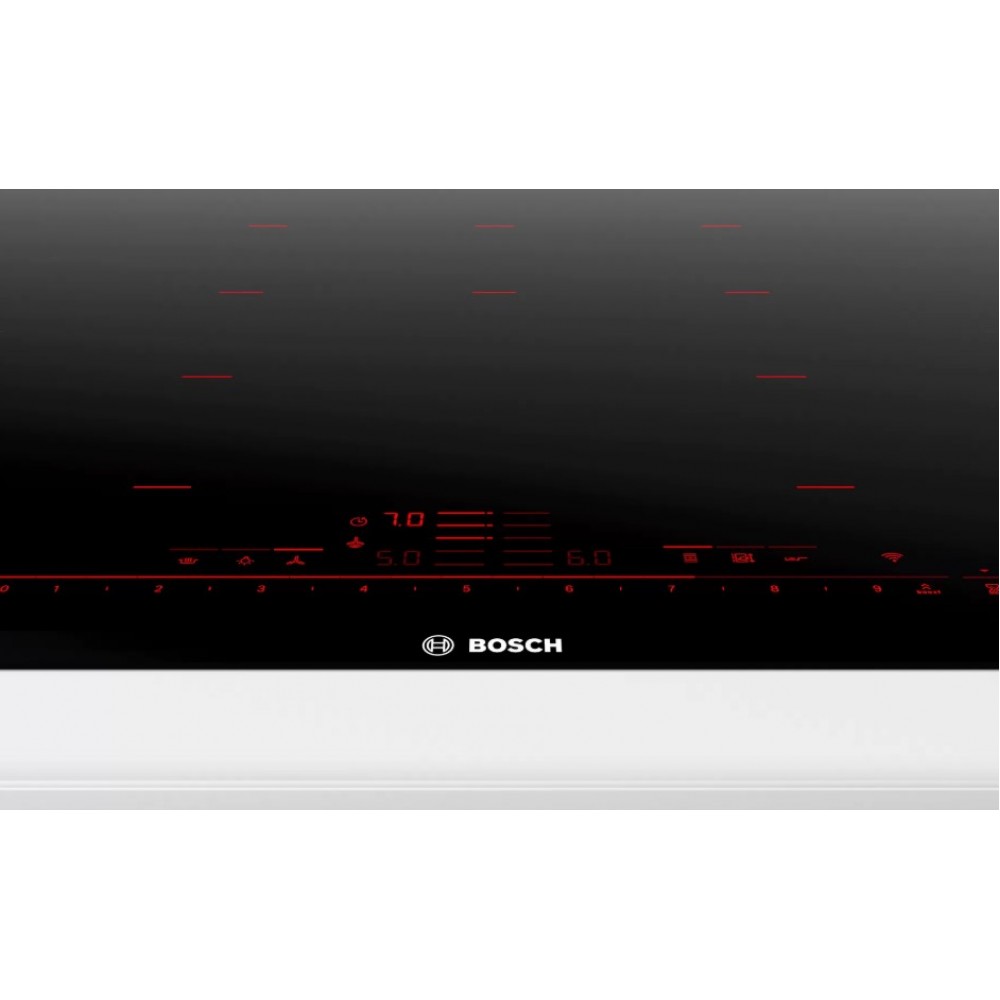 Bosch PXY898DX6E — это индукционная варочная поверхность на четыре конфорки, которые могу попарно объединяться в зоны FlexInduction. Предусмотрено 17 ступеней нагрева. Выполнена из стеклокерамики чёрного цвета. Управляется при помощи сенсорных кнопок. Безопасность эксплуатации обеспечивает блокировка от детей, индикация остаточного тепла и автоматическое отключение.