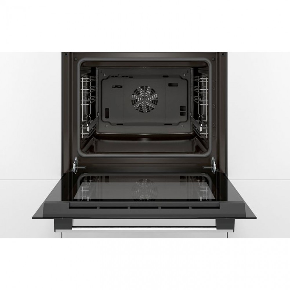 Духовой шкаф Bosch HBF134EB0R несмотря на то, что температура внутри камеры может достигать 275 C°, фронт духовки остается не горячим, благодаря тройному остеклению и специальной системе охлаждения. Покрытие EcoClean Direct задней стенке духового шкафа состоит из мельчайших керамических сфер, которые расщепляют капли жира при нагревании, даже во время приготовлению блюд. У модели есть функция «блокировки от детей» с возможностью настройки.