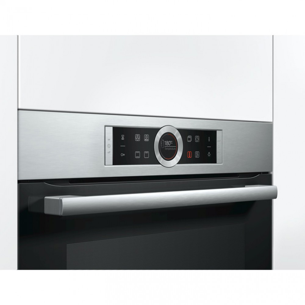Духовой шкаф Bosch HBG 632BS1 модель коллекции «Serie 8» цвета нержавеющей стали работает в режимах: 4D-горячий воздух, горячий воздух ECO, верхний/нижний жар, верхний/нижний жар ECO, гриль с конвекцией, Vario-гриль большой площади нагрева, режим для пиццы и размораживание. Дверца духовки с амортизатором открытия-закрытия softMove исключает вероятность хлопка.