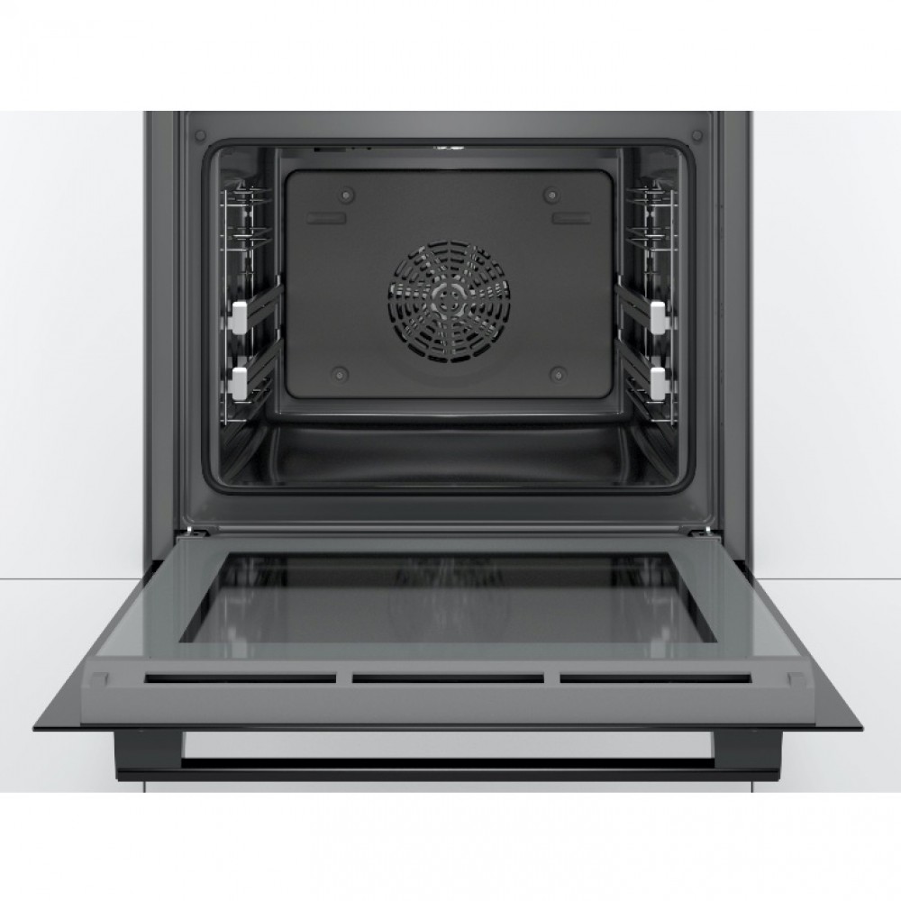 Духовой шкаф Bosch HBG536HB0R задняя стенка этой модели выполнена из самоочищающейся пористой керамики, а боковые — из эмали легкой очистки GranitEnamel. Под воздействием высоких температур даже самые застарелые жировые отложения превращаются в воду и углекислый газ. После окончания цикла достаточно протереть поверхность сухой мягкой тряпочкой — и она снова заблестит как новая.