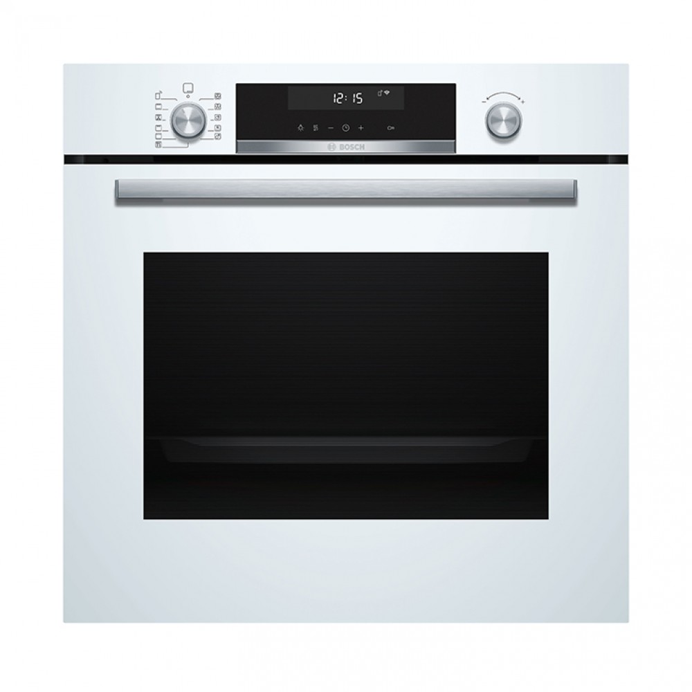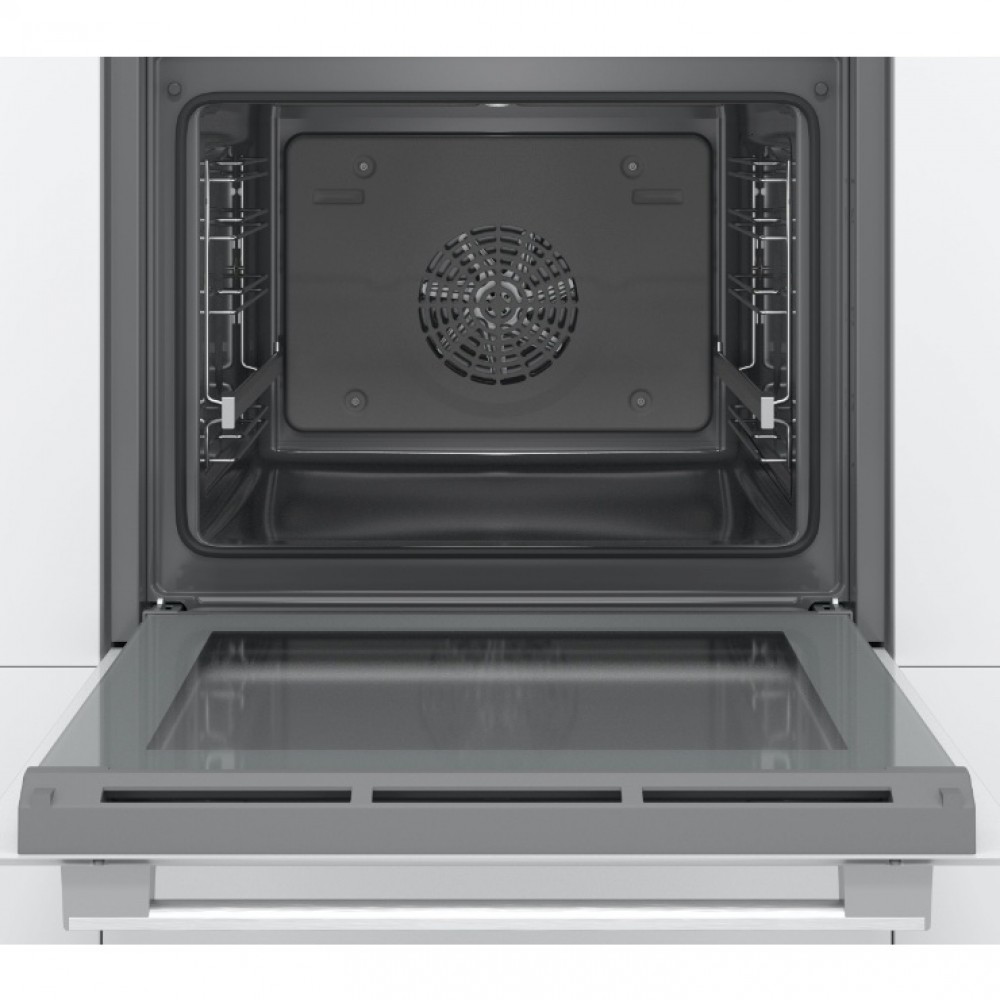 Духовой шкаф Bosch HBG538EW6R режим 3D-горячий воздух дает возможность выпекать на трех уровнях одновременно. Панели EcoClean Direct облегчают очистку, капли жира попадают на специальное покрытие на задней стенке и под воздействием высоких температур разлагаются на воду и углекислый газ.