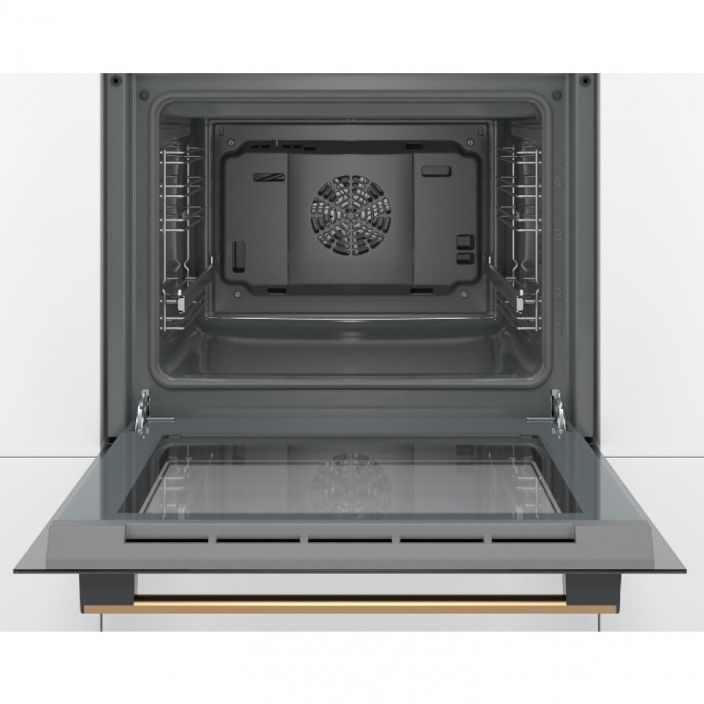Духовой шкаф BOSCH HBJN17EB0R оснащен функцией 3D-горячий воздух, которая равномерно распределяет тепло внутри духовки. Гладкая эмаль GraniteEnamel позволяет легко чистить поверхность. Направляющие SoftClose делают выдвижение направляющих более быстрым.