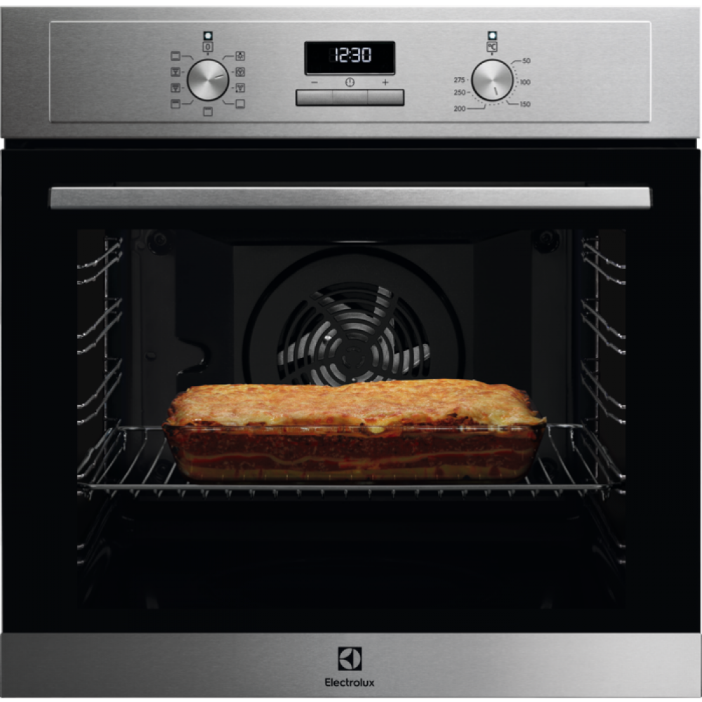 Духовой шкаф Electrolux OEF3H30X — встраиваемый духовой шкаф серии 600 SurroundCook. Сенсорный дисплей с таймером позволяет задать точную температуру и продолжительность, а также с легкостью отслеживать процесс приготовления.