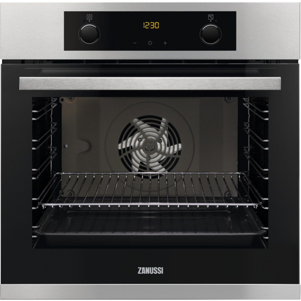 Электрический духовой шкаф Zanussi OPZA4330X. Этот духовой шкаф Multiplus с кольцевым нагревательным элементом – идеальное решение для любого рецепта, а его система равномерного распределения тепла позволит вам готовить одновременно на нескольких уровнях.