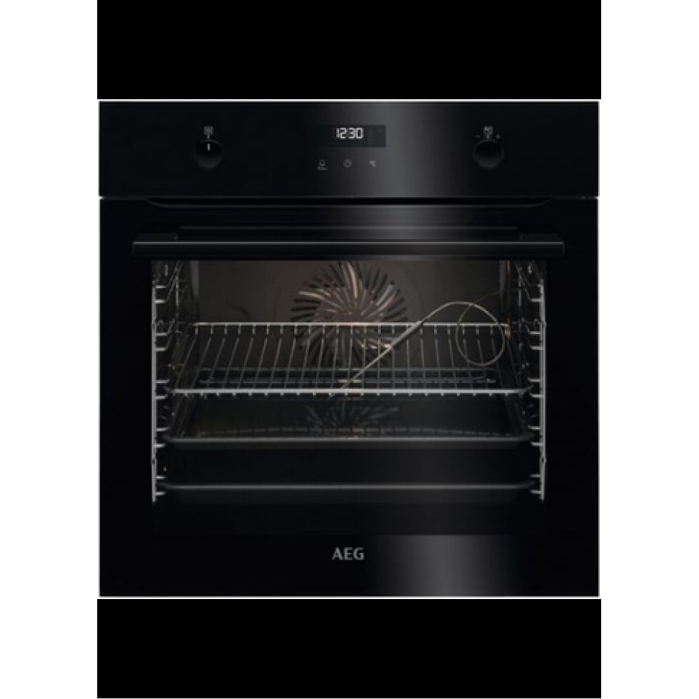 Электрический духовой шкаф AEG BCR546350B. В модели предусмотрено комфортное управление: утапливаемые переключатели и сенсорные кнопки. В комплекте с прибором поставляется термощуп, который поможет определить идеальную степень прожарки мяса, что особенно актуально при приготовлении объемных порций.