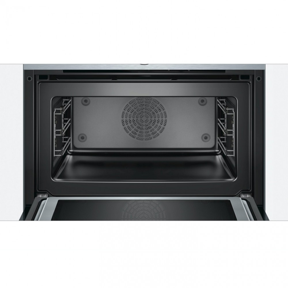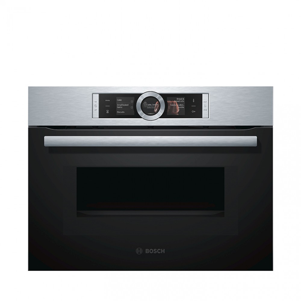 Компактный духовой шкаф с СВЧ Bosch CMG 636BS1 одной из ключевых особенностей является функция микроволн. Этот режим можно использовать отдельно или в комбинации с несколькими видами нагрева. Микроволны ускорят приготовление блюда, а гриль покроет его румяной корочкой. Мощность микроволн при этом можно изменять. Уровень в 90 Вт отлично подходит для размораживания готовых продуктов, 360 Вт — для тушения мяса, а 1000 Вт — для разогрева жидкостей.