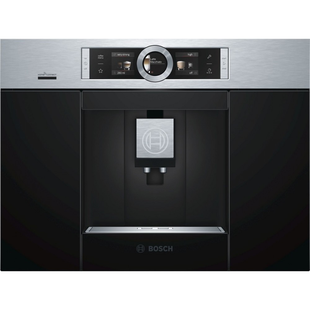 Встраиваемая автоматическая кофемашина Bosch CTL636ES6 отличается функцией удаленного контроля Home Connect, с помощью которой можно легко следить за работой прибора с помощью смартфона или планшета. Инновационный проточный нагреватель Intelligent Heater inside с сенсорами температуры определяет правильную температуру заваривания кофе. Автоматические программы очистки системы от накипи и кофейного жира делают использование кофемашины комфортным. Дизайн в стиле Хай-тек с улучшенной эргономикой предоставляет доступ к резервуару для воды и отсеку для зерен с фронтальной стороны прибора.
