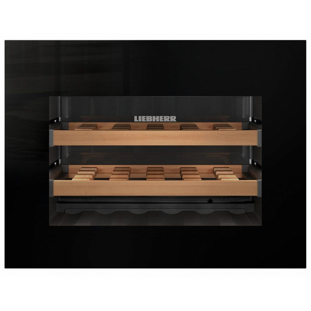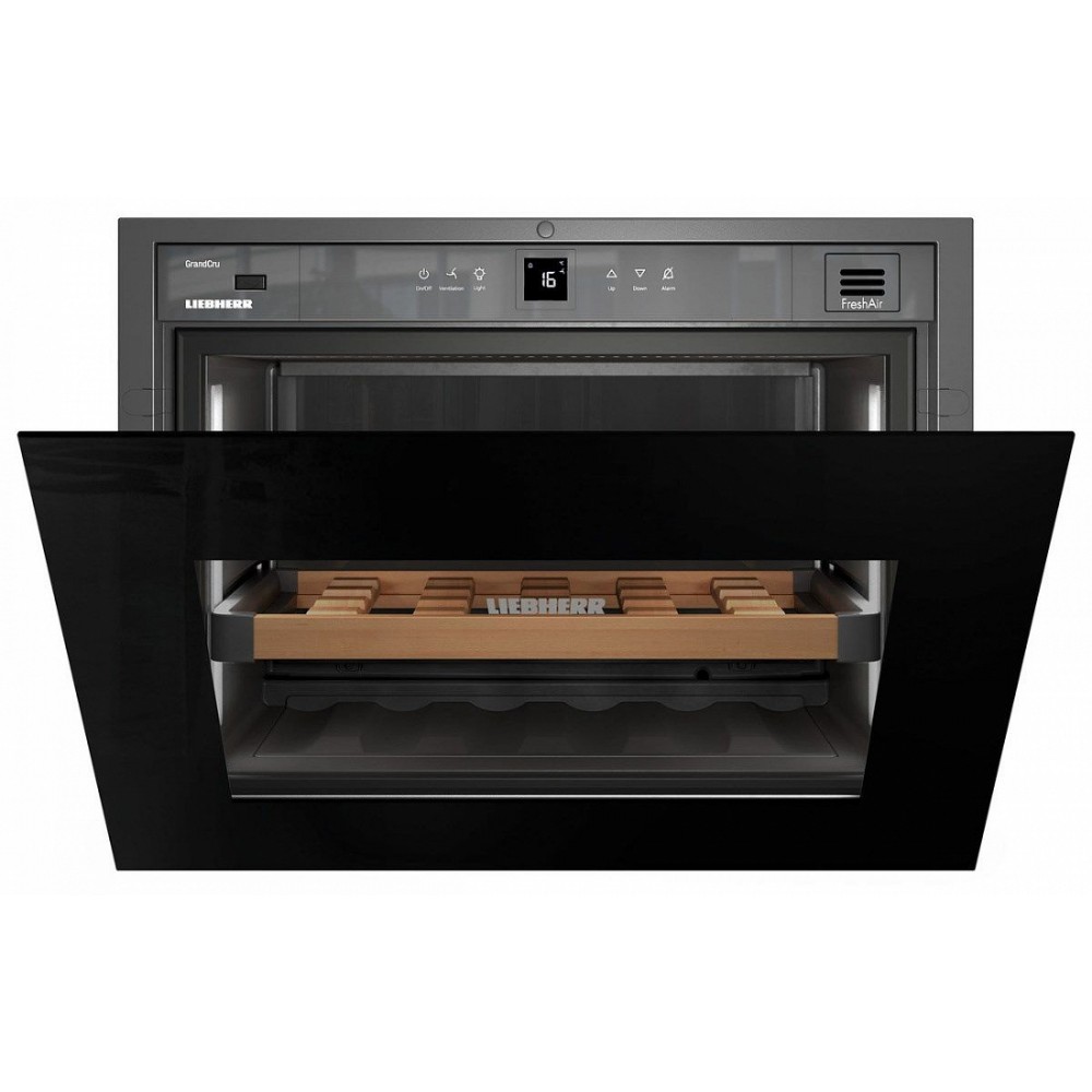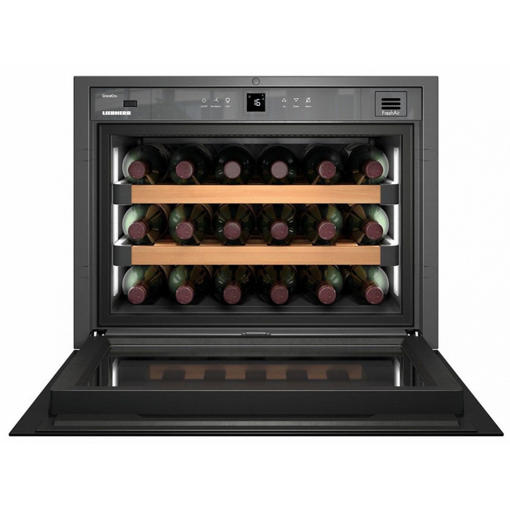 Liebherr WKEgb 582 GrandCru — встраиваемый винный шкаф с сенсорной панелью управления. Рабочая камера модели оснащена двумя деревянными полками на телескопических шинах и вмещает до 18 бутылок объемом 0.75 л. Для удобства эксплуатации предусмотрена экономичная светодиодная подсветка внутреннего пространства.