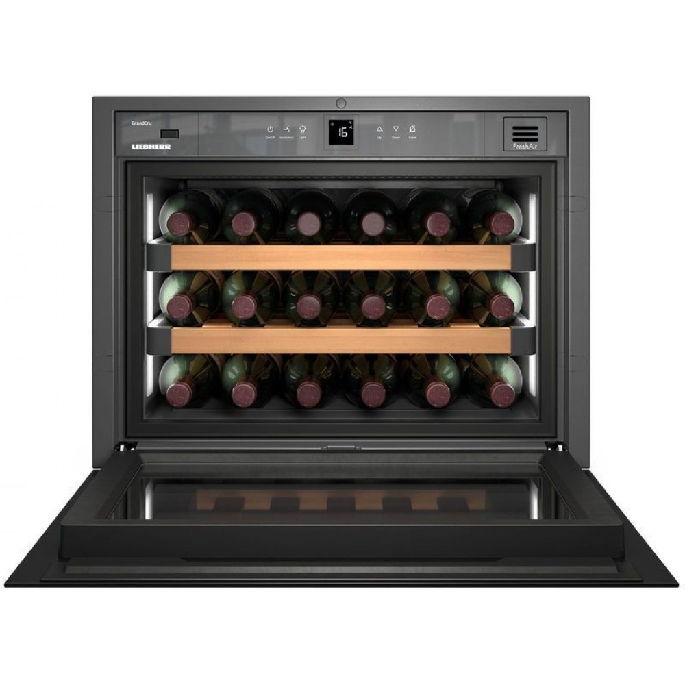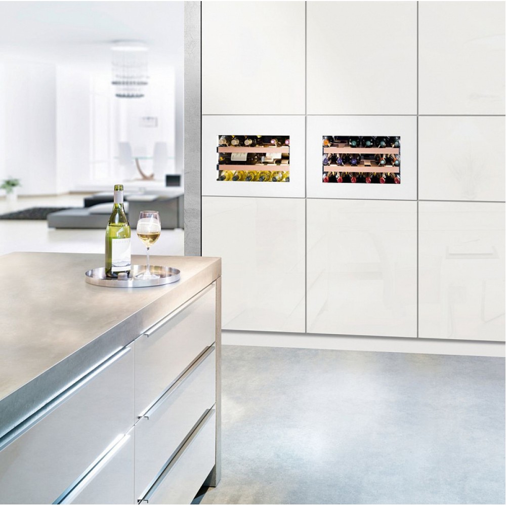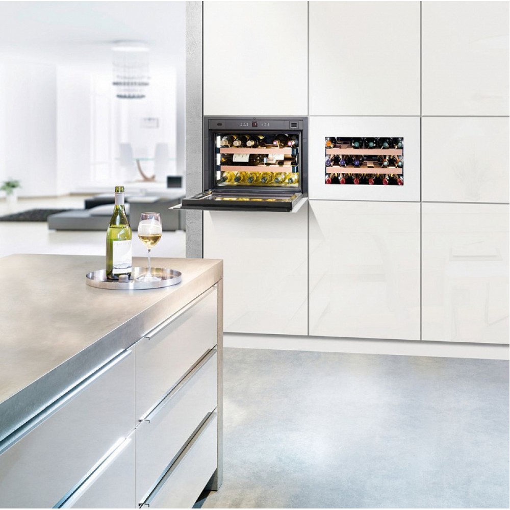 Liebherr WKEgw 582 GrandCru — встраиваемый винный шкаф с белым стеклянным фронтом. Модель характеризуется высоким классом энергетической эффективности A+, что гарантирует экономичную эксплуатацию на протяжении всего срока службы. Для регулировки рабочих параметров предусмотрена сенсорная панель управления с ЖК-дисплеем.