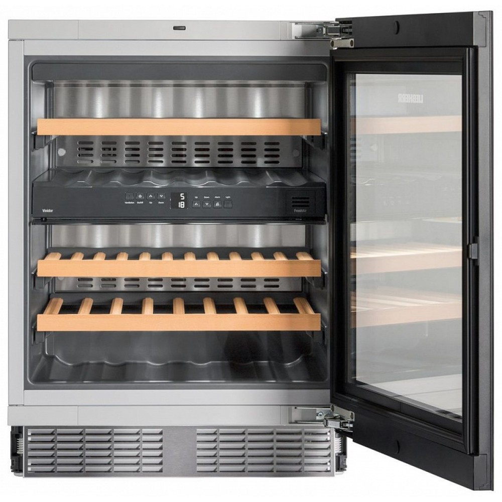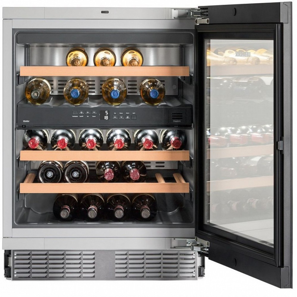 Винный шкаф Liebherr UWTgb 1682 — отличный выбор для правильного хранения алкогольных напитков, требующих особых условий. Его можно встроить под столешницу, и он не займет много места. Для плавного закрытия дверцы встроен амортизирующий доводчик.