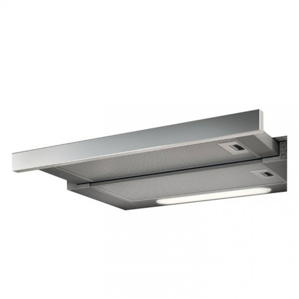 Функционал. Прибор включается путем выдвижения передней панели. Простые кнопочные переключатели гарантируют удобное управление тремя скоростями вытяжки и включением/выключением освещения. Алюминиевый фильтр пригоден для мытья в посудомоечной машине. Модель может работать в режимах отвода и рециркуляции (угольный фильтр для работы в режиме рециркуляции должен быть приобретен отдельно). Две яркие галогенные лампы станут полноценным источником освещения рабочей поверхности.
