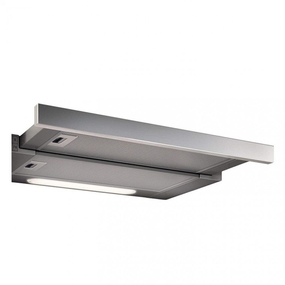 Функционал. Прибор включается путем выдвижения передней панели. Простые кнопочные переключатели гарантируют удобное управление тремя скоростями вытяжки и включением/выключением освещения. Алюминиевый фильтр пригоден для мытья в посудомоечной машине. Модель может работать в режимах отвода и рециркуляции (угольный фильтр для работы в режиме рециркуляции должен быть приобретен отдельно). Две яркие галогенные лампы станут полноценным источником освещения рабочей поверхности.